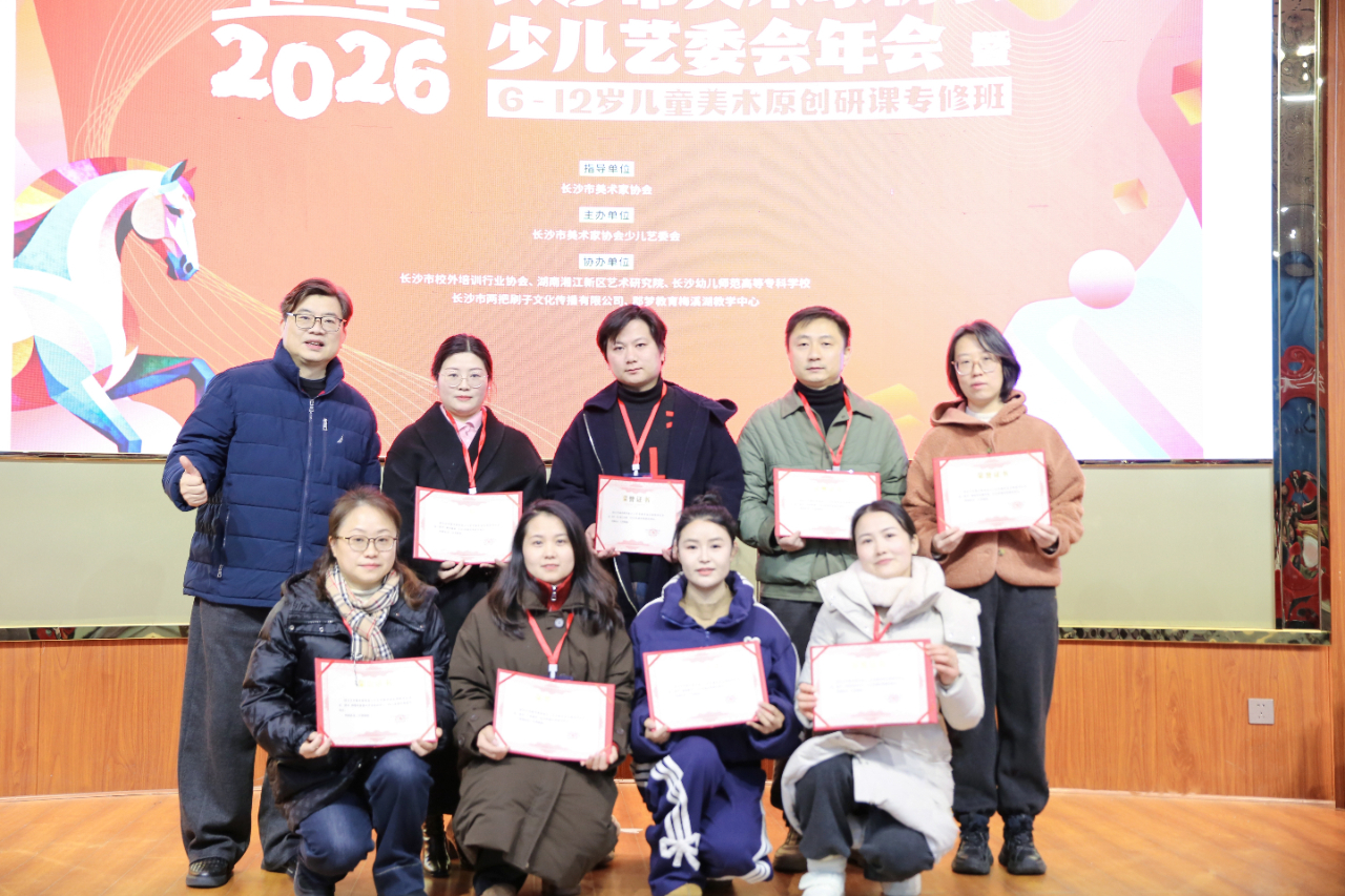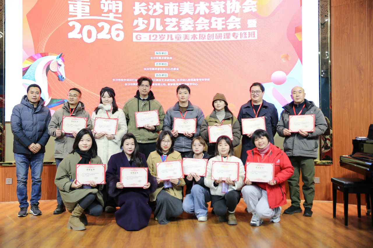 为切实推动少儿校外美术教育从“同质化教学”向“差异化、系统化、高品质”转型,助力一线教师与机构构建可持续发展核心竞争力,由长沙市美协指导,长沙市美协少儿艺术委员会主办、协会单位精心筹备的“重塑2026”长沙市美术家协会少儿艺委会年会暨6-12岁儿童美术原创研课专修班,于2026年1月22日至23日成功举办并圆满落幕。