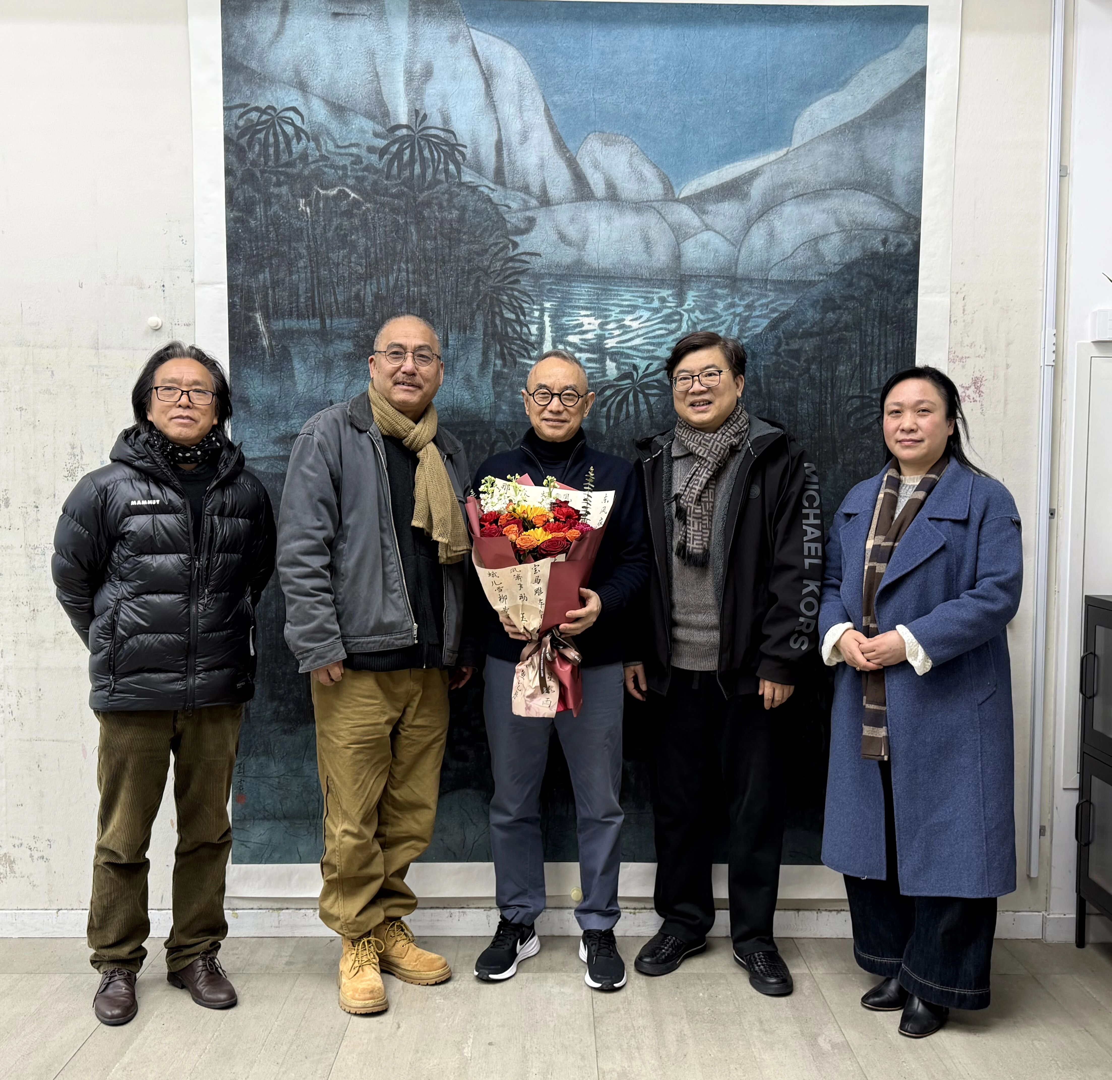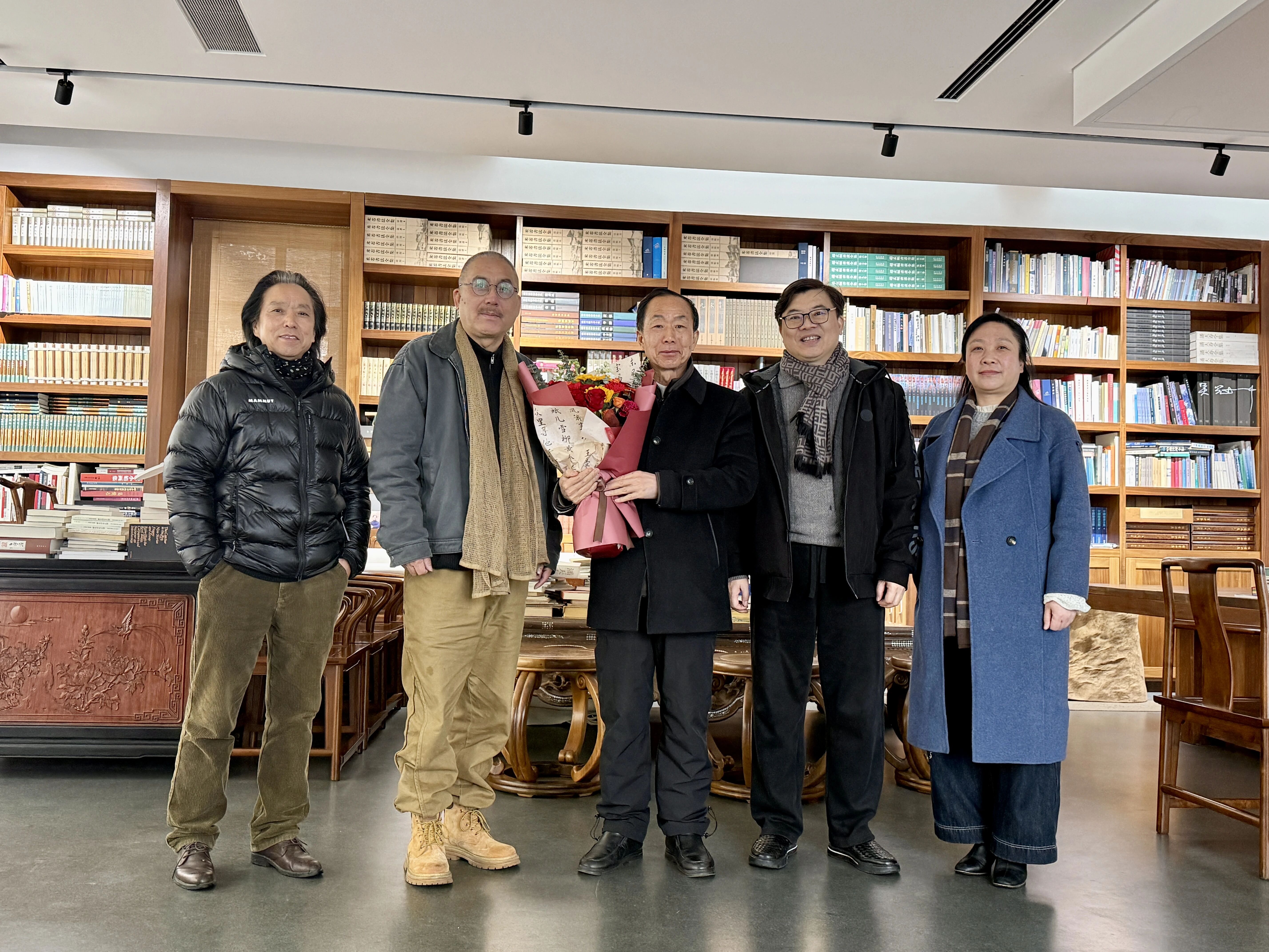 在黄铁山老师工作室,卢雨主席详细汇报了市美协过去一年的工作成果与新一年的规划,重点介绍了通过举办高质量展览、加强学术建设以提升长沙美术影响力,以及大力培养扶持中青年艺术人才的系列举措。黄铁山老师对市美协近年来的工作给予了高度评价,特别是在艺术创作、人才培养、活动组织及服务乡村振兴等方面取得的显著成绩。他期望协会未来能进一步强化艺术人才培养,为艺术家们搭建更广阔的学习交流与展示平台。