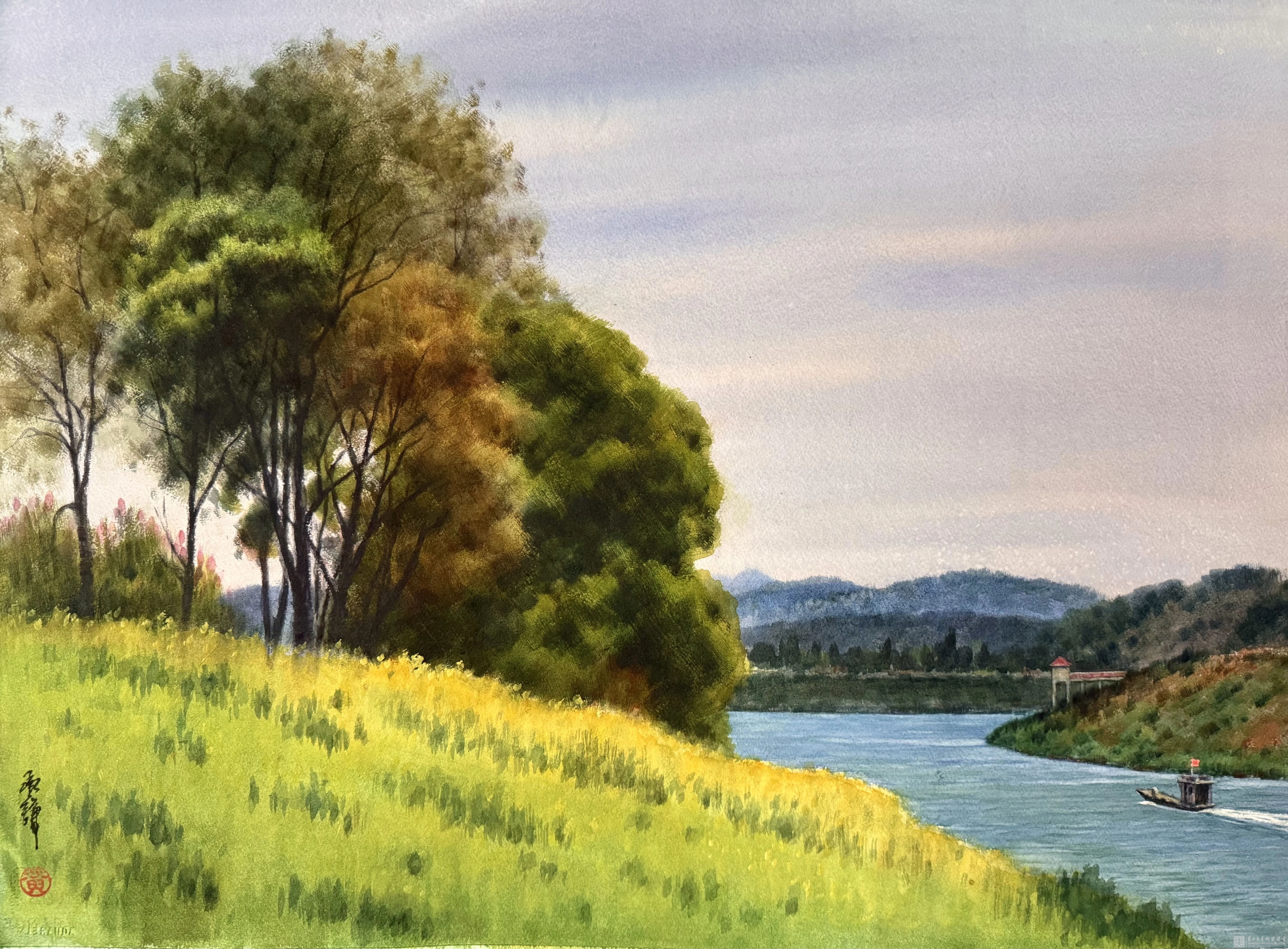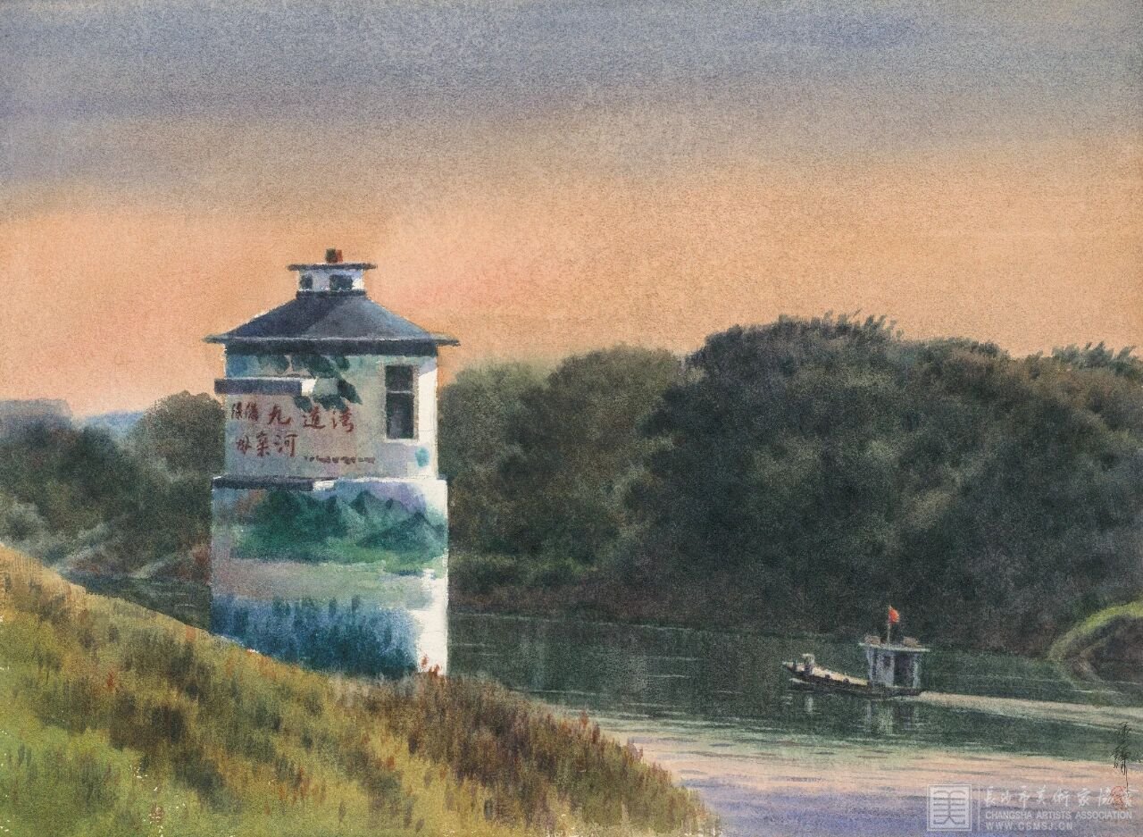十六载寒暑流转,黄承谦先生的足迹,踏遍了浏阳河两岸的每一寸土地。他追着晨光暮色,勾勒河湾蜿蜒之姿;伴着四季更迭,捕捉碧水光影之变;亲历岁月变迁,见证母亲河的焕然新生。一边是都市崛起、繁华涌动的时代新景,一边是青山如黛、碧波荡漾的生态画卷,天更蓝、水更清、岸更绿,浏阳河在时光中绽放出全新风姿。他将这份山河之美、城水相依的温情,悉数凝于尺幅之间,让每一幅作品,都成为河与城的深情对话,人与自然的和谐共鸣。
