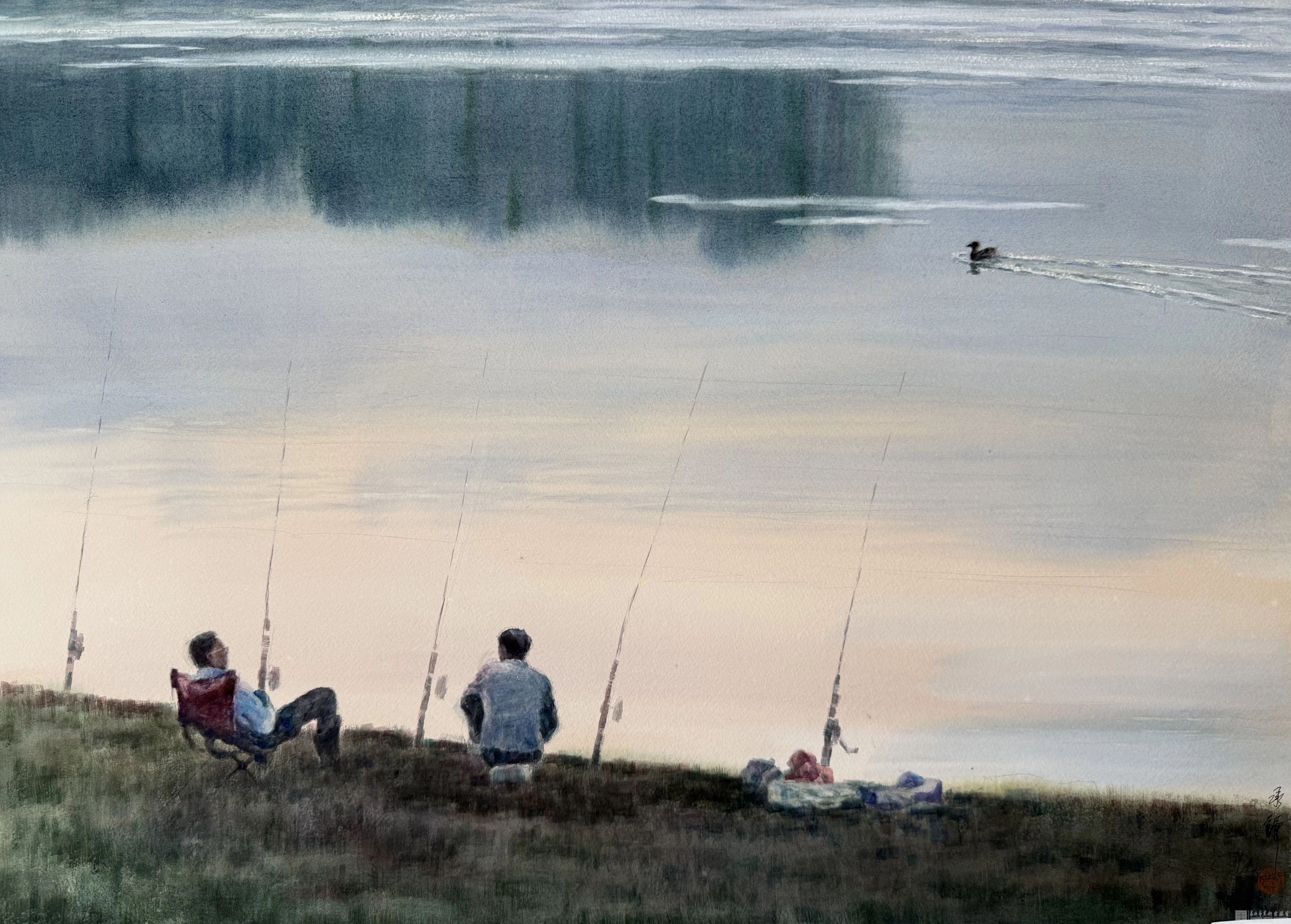 作为水彩大家黄铁山先生的晚辈,黄承谦先生自幼受叔父熏陶指点,与水彩艺术结下不解之缘。他的笔下,既有山川河湾的灵秀气韵,也有市井乡间的本真烟火:乡野间嬉闹的孩童、田埂上休憩的老农、街巷里挥毫写联的长者,一颦一笑皆有温度,一举一动尽显生活本真。那些浓郁的湘土气息、质朴的人间温情,都化作笔下温润通透的色彩,让观者于画中寻得乡愁,触摸温暖。