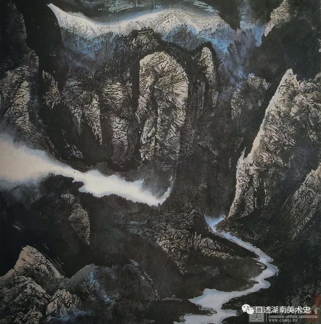 ▲绝壁流水本无名 68cm×68cm 刘昕文 1987年